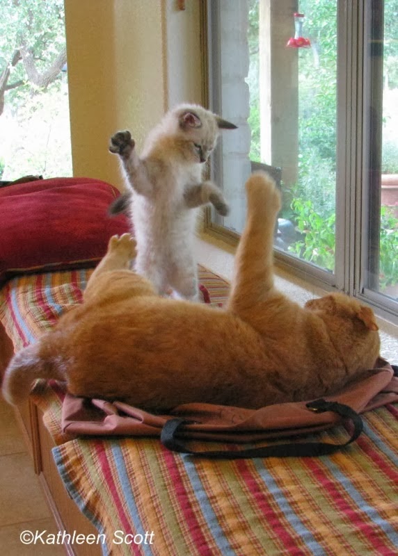 Big Brother is teaching Little Sister how to hone her fighting skills - just in case she ever meets up with an unknown predator - dog, cat, raccoon, etc. Yep, he's giving her "self defense" classes!!